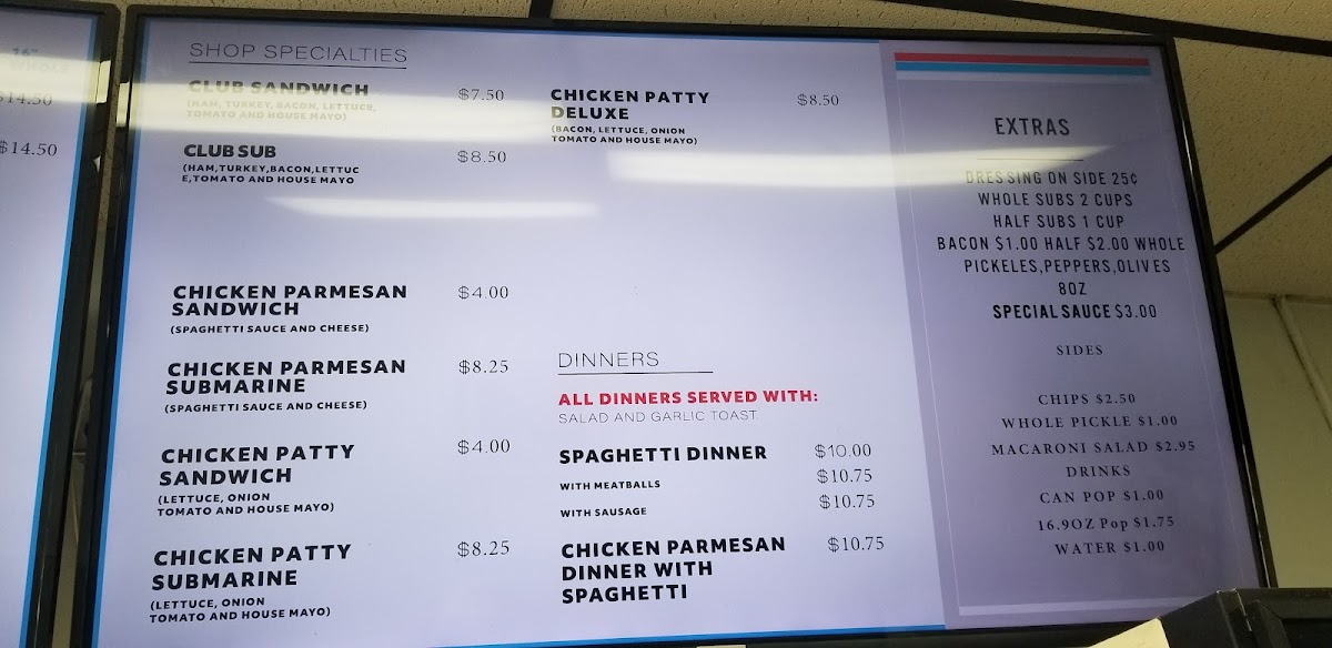Among the choices, you’ll find staples such as the Classic Italian Sub and a Club Sub, which showcase the fresh ingredients and the signature hoagie roll that frames each sandwich. The menu also includes comforting dinner options like a traditional spaghetti meal, making it easy to settle in for a homey, no-fuss experience.