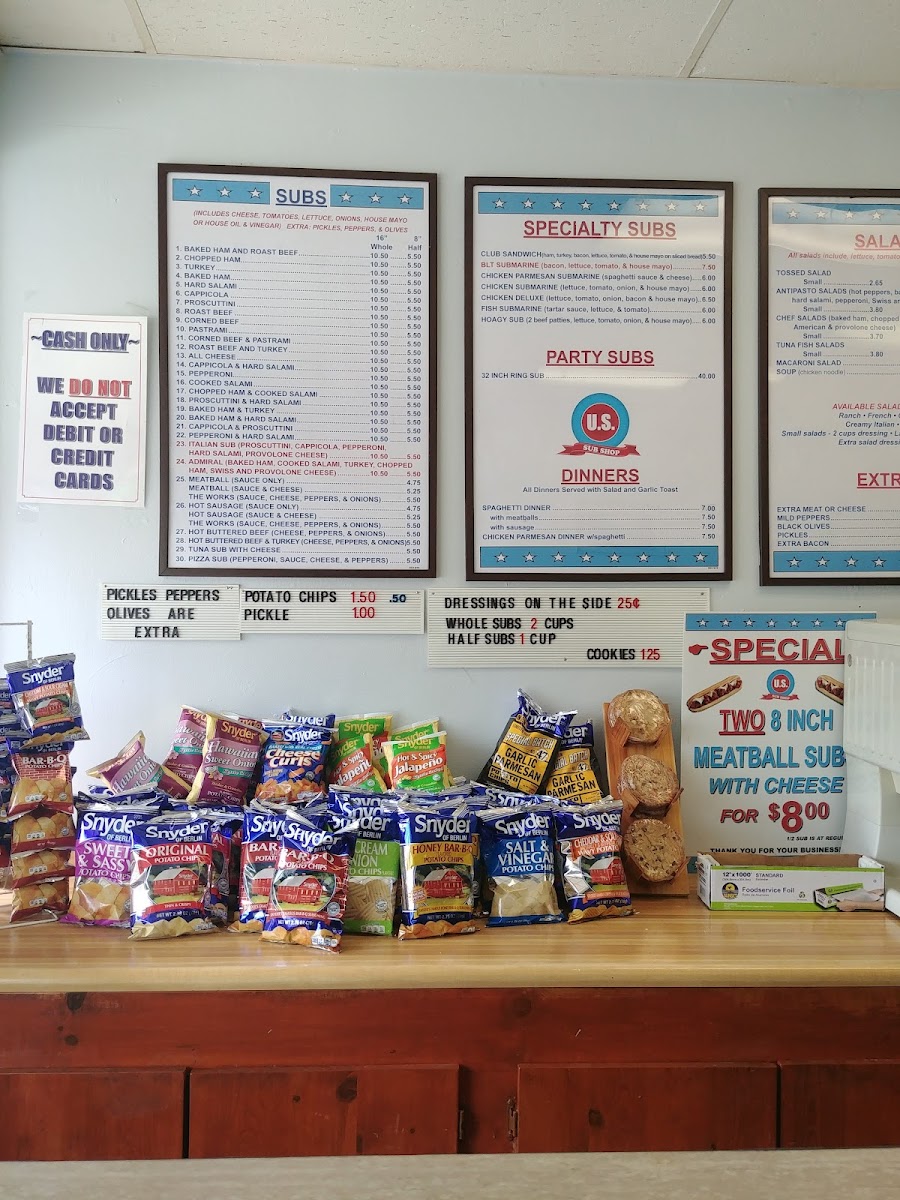 U.S. Sub offers a straightforward and satisfying menu that focuses on classic deli-style sandwiches and comforting, familiar sides. The selection leans into casual bites perfect for lunch or a relaxed dinner, featuring options like hearty subs and simple sandwiches paired with chips or a crisp pickle.